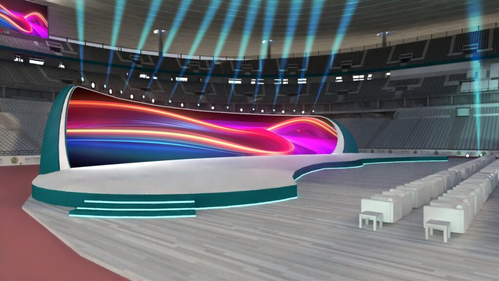 تنفيذ تصميم متكامل لحفل جامعة الأمير سطام، شمل المنصة الرئيسية والبوابات والديكورات الداخلية، مع إضاءة احترافية وشاشات عرض حديثة أبرزت هوية الجامعة وأجواء الحدث.